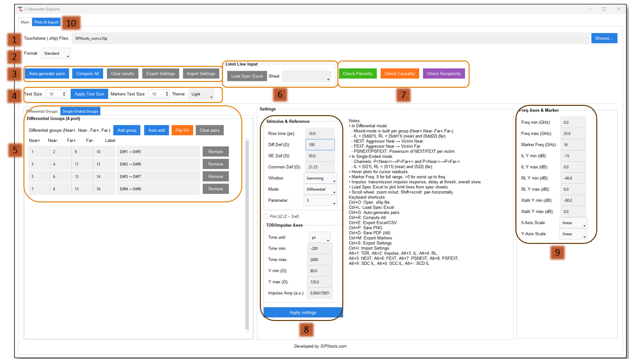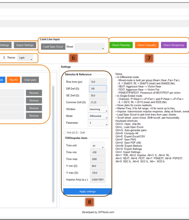 8.2 Diff Zref (Ω): Defines the differential reference impedance applied during differential-mode analysis.